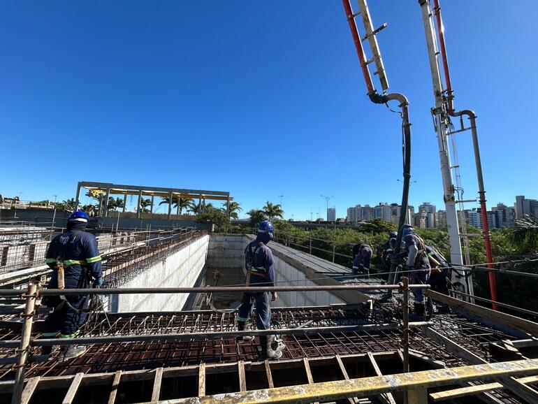 Nessa fase, a Casan utilizou 48m³ de concreto para a construção de parte das passarelas do Tanque de Aeração 03, dos pilares de sustentação e laje da Elevatória de Gordura, além da laje e paredes do Reservatório de Geocálcio. As três estruturas terão papel crucial no ciclo de tratamento e já vêm recebendo atenção da companhia nas concretagens dos últimos dois meses. A Estação Elevatória de Gordura vai encaminhar a gordura separada do efluente para o tanque de lodo, local onde a gordura será tratada em separado e posteriormente descartada em aterro sanitário.