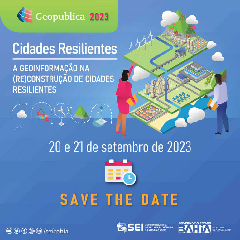 Com o tema ‘A geoinformação na (re)construção de cidades resilientes’, o Geopublica 2023 vai reunir pesquisadores, estudantes, terceiro setor, iniciativa privada e gestores públicos e abordar o desafio das mudanças climáticas e seu enfrentamento na Bahia, no Brasil e no mundo, considerando os Objetivos do Desenvolvimento Sustentável (ODS) das Nações Unidas.