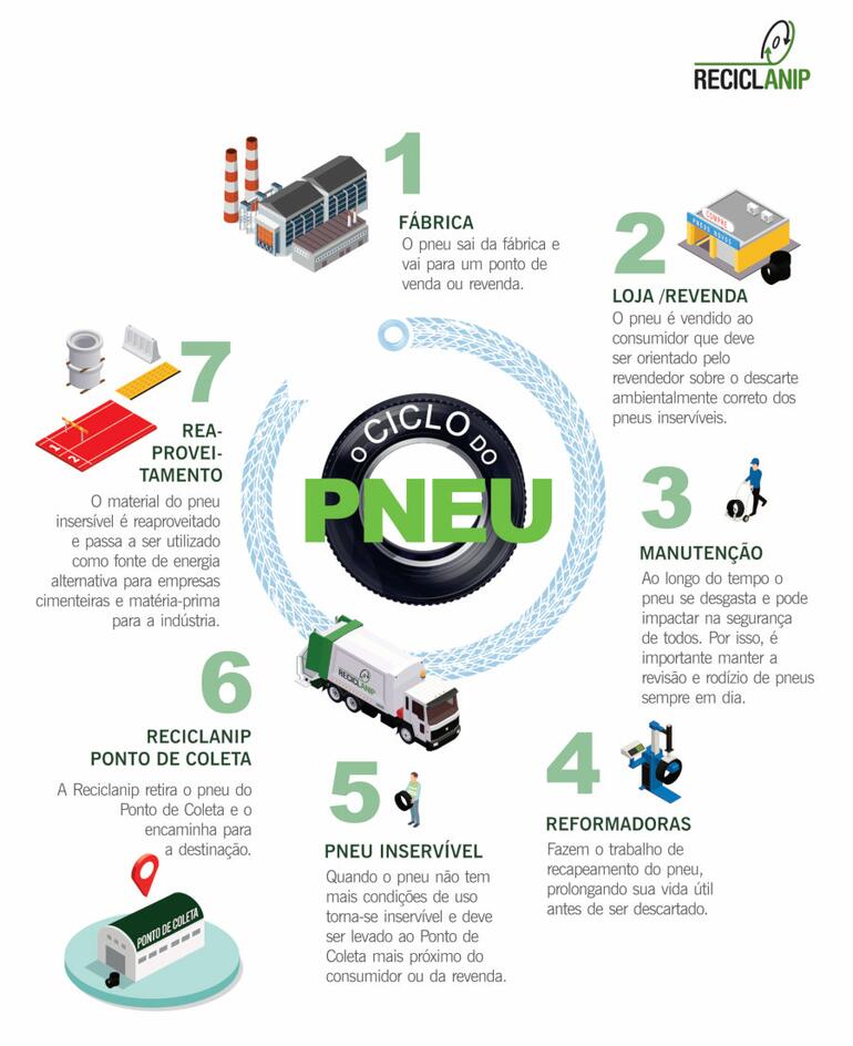 Segundo Müller, a operação da Reciclanip começa na logística para o recolhimento dos pneus nos pontos de coleta ou em campanhas nos municípios que não tenham os pontos, passa pela destinação correta do pneu, trituração com empresas parceiras e retorna para o mercado por meio de utilização em cimenteiras como fonte de energia alternativa, siderúrgicas e na fabricação de produtos como percintas, solas de calçados, asfalto borracha e tapetes para automóveis. O executivo reforça, ainda, que é necessária a cooperação e colaboração entre todos os envolvidos nas diferentes cadeias da produção industrial. “Isso inclui desde as empresas e colaboradores envolvidos nas etapas iniciais, no extrativismo da matéria-prima, até a logística e a comercialização junto aos consumidores”.