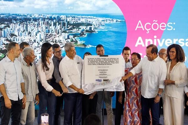 O Governador da Bahia Jerônimo Rodrigues anunciou investimento de R$ 126,6 milhões para fortalecer a infraestrutura de abastecimento de água e saneamento básico. No Parque São Bartolomeu, Subúrbio Ferroviário da capital, o programa inclui a entrega de obras essenciais, novas ordens de serviço e licitações que vão beneficiar milhares de soteropolitanos. “Com essas obras, chegaremos a 97% da cobertura de esgotamento sanitário na cidade de Salvador, garantindo também a oferta de água e a regularidade dessa oferta também em municípios da Região Metropolitana. É uma agenda muito especial e faz parte das comemorações pelo aniversário da capital, demonstrando o nosso carinho e zelo pelos soteropolitanos. É assim que cuidamos da cidade”, declarou Jerônimo.