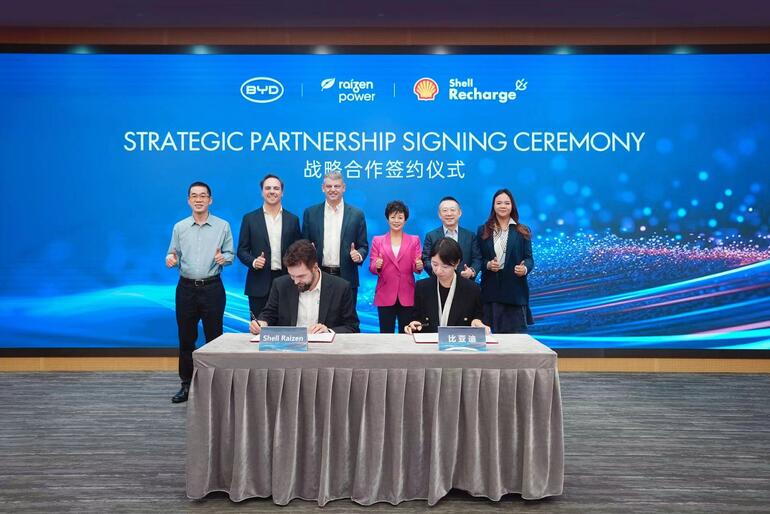A Shell possui cerca de 55.000 pontos públicos de recarga (uma das maiores do mundo) em mais de 30 mercados e espera ter aproximadamente 70.000 pontos até 2025. Em setembro de 2023, a Shenzhen Shell e a BYD Electric Vehicle A Investment Company Limited – uma joint venture entre a Shell e a BYD – inauguraram a maior estação de carregamento de veículos elétricos da Shell no mundo, localizada em Shenzhen, China, com 258 carregadores rápidos. Atualmente, este hub da marca Shell atende mais de 3.300 clientes de veículos elétricos todos os dias com seis opções de conveniência, como um lounge, Shell Café e Shell Select. A cerimônia de assinatura entre a Raízen Power e a BYD marca um importante momento da parceria estratégica entre as duas partes globalmente.
