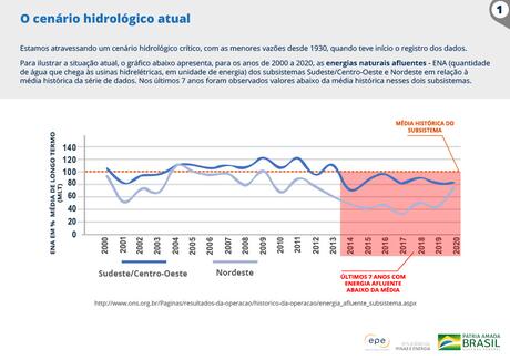 O material mostra o cenário hidrológico atual, explica a importância da água e das hidrelétricas para a geração da energia elétrica no Brasil e a relação entre as hidrelétricas e os demais usuários da água. Nesse contexto, a EPE discute a importância de se flexibilizar as restrições operativas nesse momento e as ações em curso desde 2020 para garantir a oferta de energia elétrica.