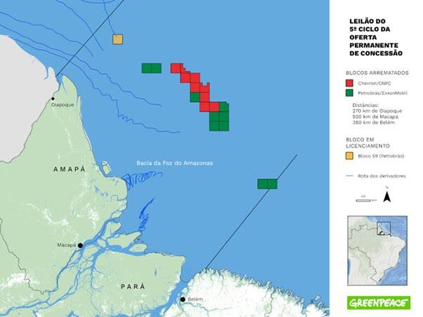 Exatamente um mês após a Agência Nacional do Petróleo, Gás Natural e Biocombustíveis (ANP) realizar leilão ofertando 47 novos blocos para exploração de petróleo na Bacia da Foz do Amazonas - além de outros blocos em demais regiões do Brasil -, o Congresso Nacional aprovou um projeto de lei que implode o processo de licenciamento ambiental, o PL da Devastação, em 17 de julho. Segundo o texto do PL 2159/21 aprovado na Câmara dos Deputados no último dia 17, o licenciamento ambiental para exploração de petróleo no Brasil será do tipo “simplificado” e o estudo de impacto ambiental será exigido somente em “situações excepcionais” e que sejam devidamente justificadas pela autoridade licenciadora, algo totalmente oposto ao processo em curso no Bloco 59, que está há 12 anos em fase de análise devido à complexidade socioambiental do empreendimento. "Em junho, as petroleiras, incluindo a Petrobras, compraram 19 blocos de petróleo na Bacia da Foz do Amazonas como quem reserva apartamentos na planta: elas apostam na certeza política de que o prédio será erguido às pressas, beneficiados por um licenciamento de alicerces frágeis. Não à toa, 40% dos blocos ofertados nesta região foram leiloados para apenas quatro petroleiras. Certamente, já havia a expectativa de que o PL da Devastação será o alvará que elas precisam para liberar a construção de um futuro afundado nos combustíveis fósseis", comenta a porta-voz da campanha de Oceanos do Greenpeace Brasil, Mariana Andrade.