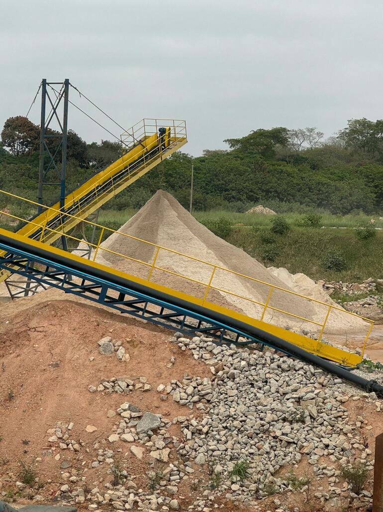O processo começa com o recebimento de materiais provenientes de obras do metrô, construtoras, Sabesp, ampliação de aeroportos, entre outros. Os materiais são alimentados na corredeira com o auxílio de escavadeiras, seguindo pela gravidade e fluxo de água. Em seguida, são enviados para a primeira draga e bombeados para a peneira estática, onde ocorre a separação da terra da areia. O material é então submetido a uma nova lavagem, seguida por um segundo bombeamento e peneiramento classificatório, que separa os materiais de acordo com a granulometria. Os pedriscos e a Pedra 1 são direcionados para a correia transportadora, enquanto o material mais fino vai para o tanque de relavagem e é separado para comercialização.