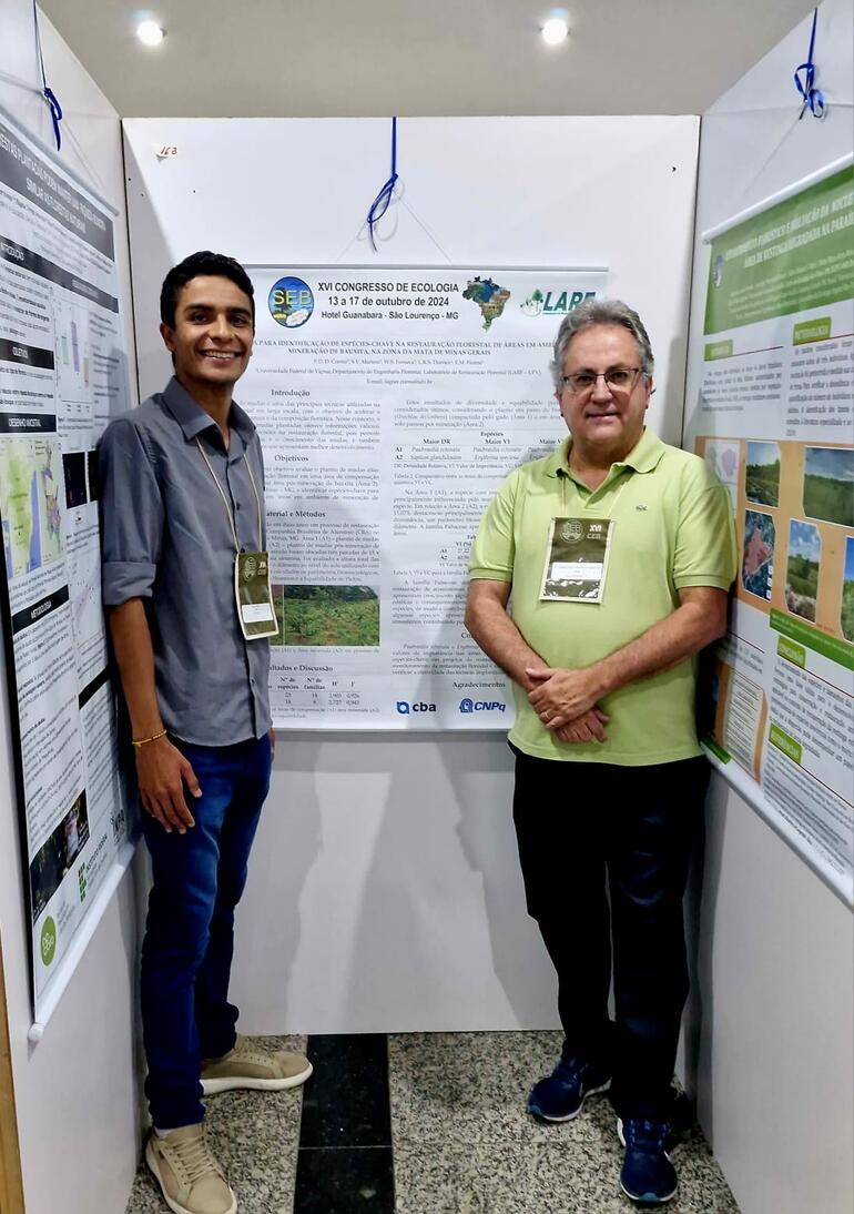 Promovido pela Sociedade de Ecologia do Brasil, o Congresso reuniu especialistas de diferentes áreas da ecologia vinculados a importantes instituições de várias regiões do Brasil, além de estudantes de graduação e de pós-graduação. Na palestra intitulada “Restauração ecológica no contexto da mineração”, o professor Venâncio apresentou novas tecnologias de restauração e resultados das pesquisas do LARF na CBA, como bolas de sementes com Tecno-solo de bauxita, plantio de mudas altas na restauração florestal com espécies nativas da Mata Atlântica, técnicas de nucleação, monitoramentos de fauna e flora nas áreas restauradas, entre outras. Por sua vez, o mestrando Fagner Corrêa, que desenvolve a pesquisa de sua dissertação na CBA, apresentou os trabalhos “Monitoramento de espécies nativas da Mata Atlântica no ambiente de mineração de bauxita na Zona da Mata mineira: uma abordagem baseada no espaçamento de plantio” e “Fitossociologia para identificação de espécies-chave na restauração florestal de áreas em ambiente de mineração de bauxita, na Zona da Mata de Minas Gerais”, ambos desenvolvidos em Itamarati de Minas, em áreas que compõem um importante corredor ecológico que vem sendo implantado pela CBA com orientação técnica e pesquisas do LARF, o qual está conectando três Reservas Particulares de Proteção Natural – RPPNs da região, sendo duas da Companhia e demais áreas preservadas por produtores rurais, formando o maior maciço florestal particular do estado.
