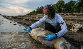 Escassez de água potável e animais mortos