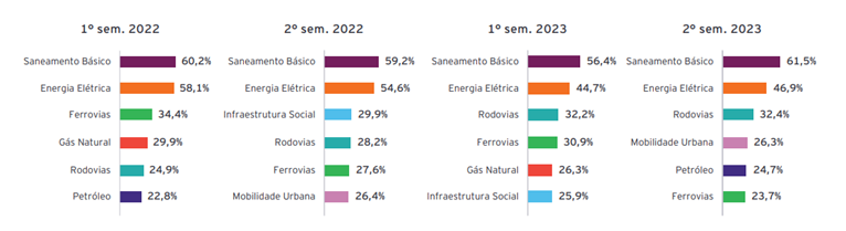No setor de energia elétrica, o destaque fica para a estruturação e regulamentação bem dos últimos anos. “Como esse é um tema que tem uma regulamentação mais avançada e encaminhada, acaba gerando uma situação mais confortável e segura para os investidores, principalmente da iniciativa privada”, afirma o executivo. Para Gusmão, “o crescimento do apetite por investimentos em rodovias parece estar muito atrelado ao novo PAC (Programa de Aceleração e Crescimento) do governo federal e a iniciativas estaduais de concessões rodoviárias observadas em 2023”. Para o representante da EY, o Novo PAC atraiu investimentos públicos e privados nessa agenda. “Inclusive, esse otimismo em relação ao novo PAC foi um dos pontos de destaque dessa edição do Barômetro”, completa.