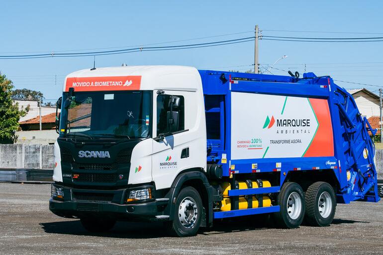 O caminhão escolhido para este segundo lote foi o G 280 XT. Na primeira entrega, em novembro de 2024, foram três semipesados P 280 XT. O G 280 XT conta com motor Euro 6, de 9L, que pode receber tanto gás natural comprimido quanto biometano em qualquer proporção. O modelo entrega uma capacidade de armazenagem, em seus oito cilindros, de até 230 metros cúbicos de gás, conferindo autonomia satisfatória para operações urbanas de coleta de resíduos. Para esta nova necessidade da Marquise a cabine G é maior e acomoda melhor a configuração de quatro assentos (um motorista e três passageiros). O veículo desenvolve um torque de 1.350Nm e seu peso bruto total combinado (PBTC) chega na capacidade de 40 toneladas. Além disso, o caminhão vocacional tem uma série de configurações específicas para o segmento de coleta de resíduos. A cabine G foi configurada com o pacote off-road XT. O modelo já está equipado com a caixa de câmbio Opticruise G25CM, a mesma utilizada no pesado Scania Super, e que garante trocas de marchas mais rápidas. Os pioneiros caminhões semipesados e pesados Scania movidos a gás (natural comprimido e/ou biometano) são vocacionados para curtas, médias e longas distâncias. Seus motores são do Ciclo Otto (o mesmo conceito dos automóveis) e não são convertidos do diesel para o gás, têm garantia de fábrica, tecnologia confiável, desempenho consistente e força semelhante ao diesel. Além de serem mais silenciosos. As potências oferecidas são: 280, 340, 420 e 460 cavalos.