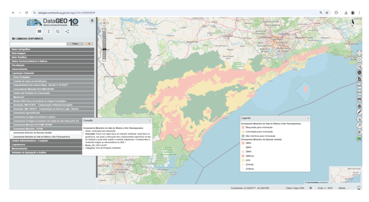 Os zoneamentos são obtidos por meio de estudos de Ordenamento Territorial Geomineiro (OTGM), elaborados pelo Instituto de Pesquisas Tecnológicas (IPT), vinculado à Secretaria de Ciência, Tecnologia e Inovação (SCTI), em parceria com a Semil. “Ao inserir esses zoneamentos no DataGEO, São Paulo amplia a transparência e cria uma referência de planejamento territorial para o setor mineral”, afirmou Lilia Sant’Agostino, diretora de Mineração da Subsecretaria de Energia e Mineração da Semil.