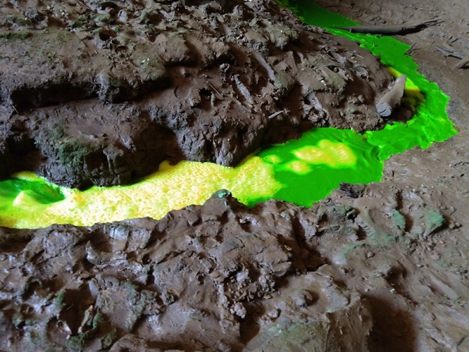 O Serviço Geológico do Brasil (SGB-CPRM), em parceria com a Agência Nacional de Águas e Saneamento Básico (ANA) está lançando corante estéril e inofensivo ao meio ambiente, pessoas e animais para mapear a trajetória e a velocidade das águas que adentram nos sumidouros do rio Verde Grande e fluem no subsolo.