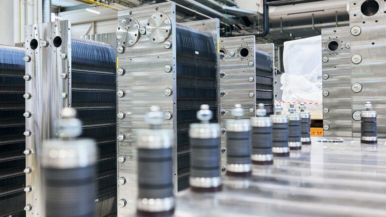 O eletrolisador da Siemens Energy é baseado na tecnologia PEM (“membrana de troca de prótons”, na tradução da sigla para o português), que utiliza eletricidade para dividir a água em seus componentes, hidrogênio e oxigênio, ao longo da membrana de troca de prótons. Esta tecnologia é particularmente adequada para operações com energia renovável devido aos tempos de aumento de carga muito flexíveis neste tipo de geração. Os módulos – o coração dos eletrolisadores – são fabricados no novo site de produção da Siemens Energy, inaugurado em novembro de 2023 em Berlim.