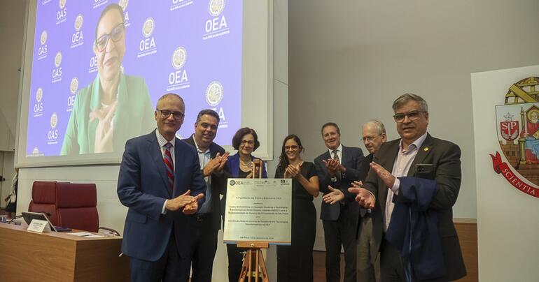 No último dia 3 de dezembro aconteceu a cerimônia de reconhecimento do Centro de Excelência em Inovação Oceânica e Tecnologias Transformadoras da Universidade de São Paulo (Inova Oceano – Cátedra Unesco para a Sustentabilidade do Oceano) como membro da rede de Centros de Excelência da Organização dos Estados Americanos (OEA) em Tecnologias Transformadoras. Instituída em 2019 por meio de um convênio entre a Organização das Nações Unidas para a Educação, a Ciência e a Cultura (Unesco) e a USP, a cátedra tem o Instituto de Estudos Avançados (IEA) e o Instituto Oceanográfico (IO) como responsáveis por suas atividades e gestão, além da parceria de quatro instituições : a Coordenação de Ciências Oceânicas do Ministério da Ciência, Tecnologia, Inovação e Comunicação; o Brazilian Future Ocean Panel (Painel Mar); a Brazilian Coastal Benthic Habitats Monitoring (ReBentos); e a SOS Mata Atlântica.